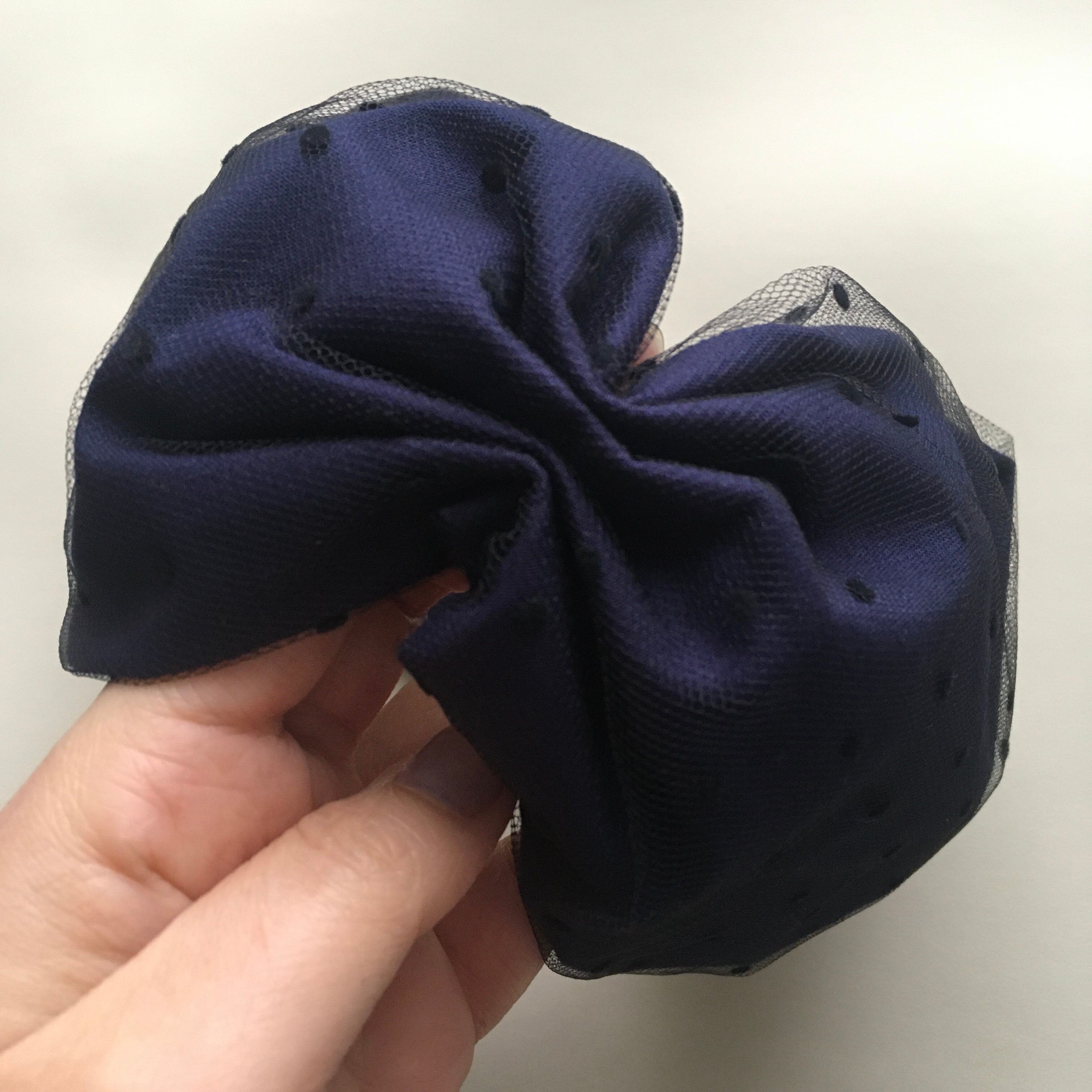 通気性のいい麻の生地とドットチュールを組み合わせて作ってあります
