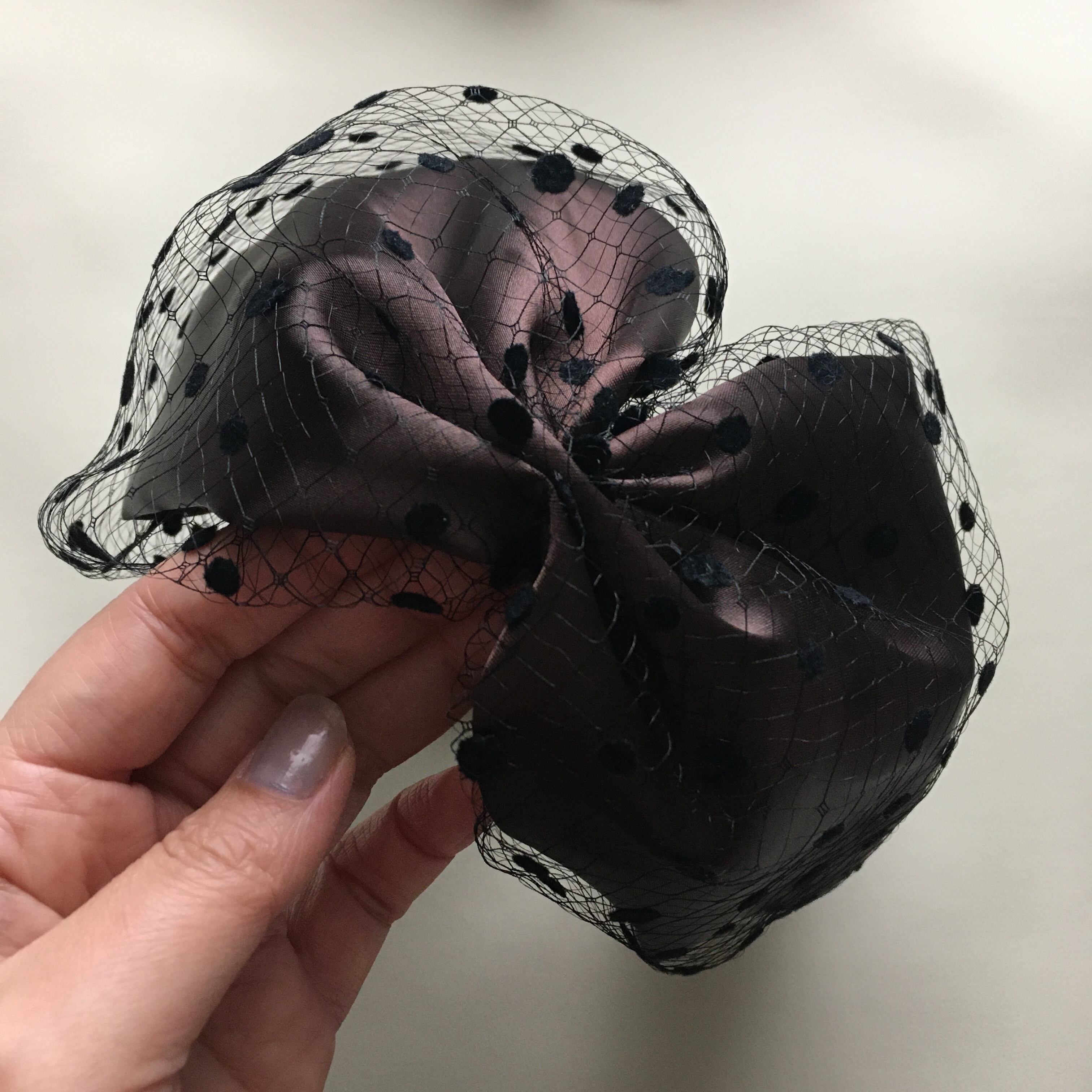 艶やかなサテンの生地とドットチュールを組み合わせて作ってあります