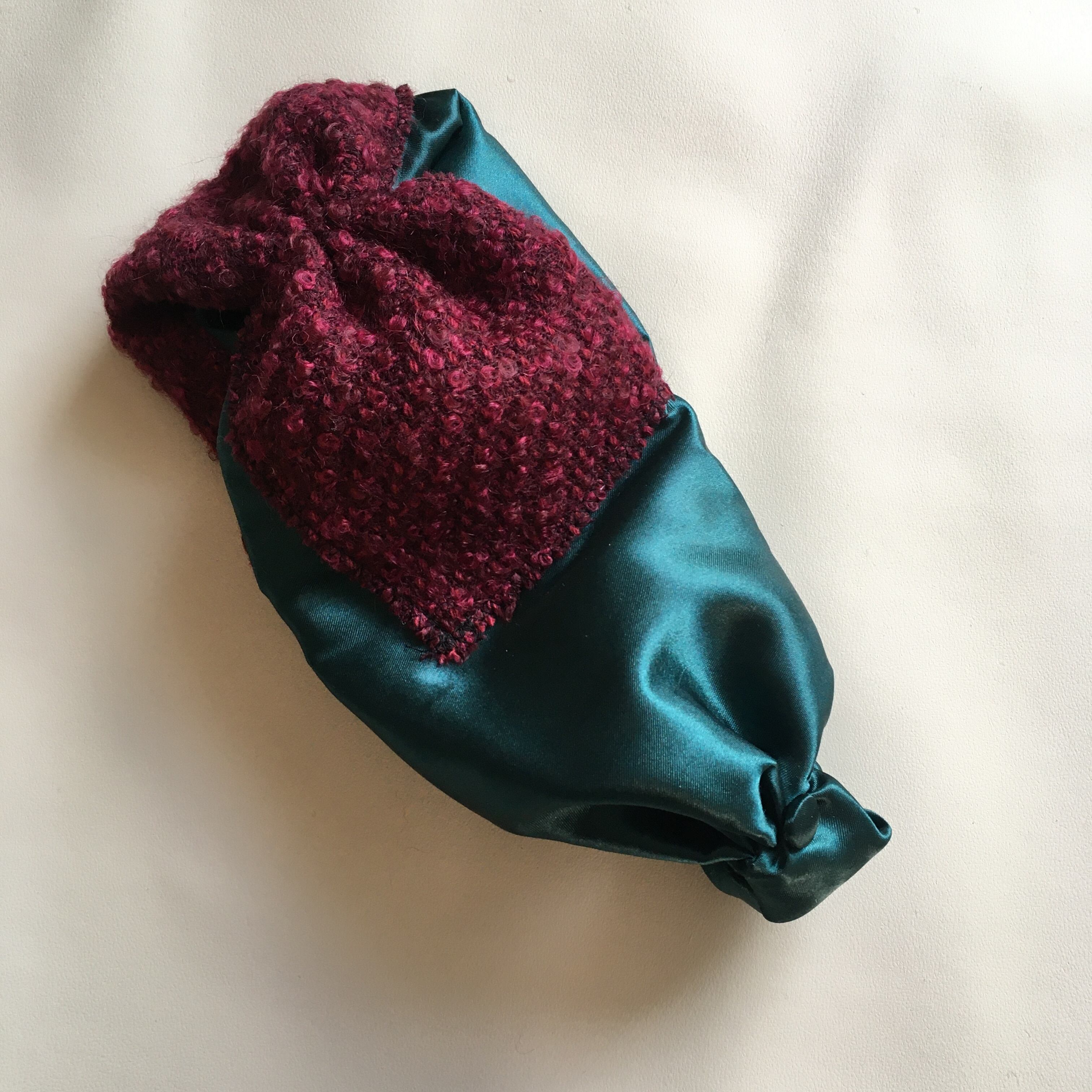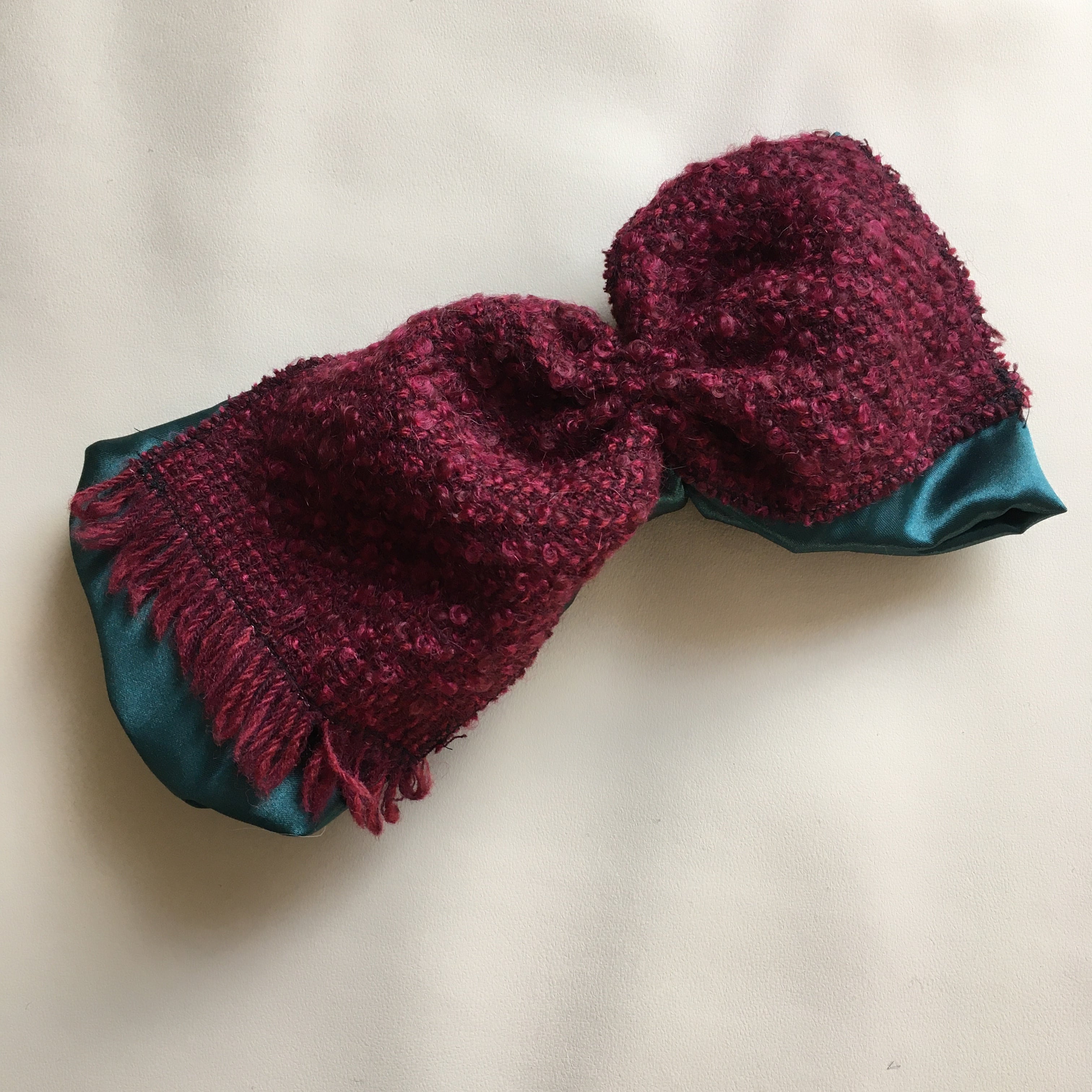 リントンツイードのヘアバンド(パープルレッド×グリーン)