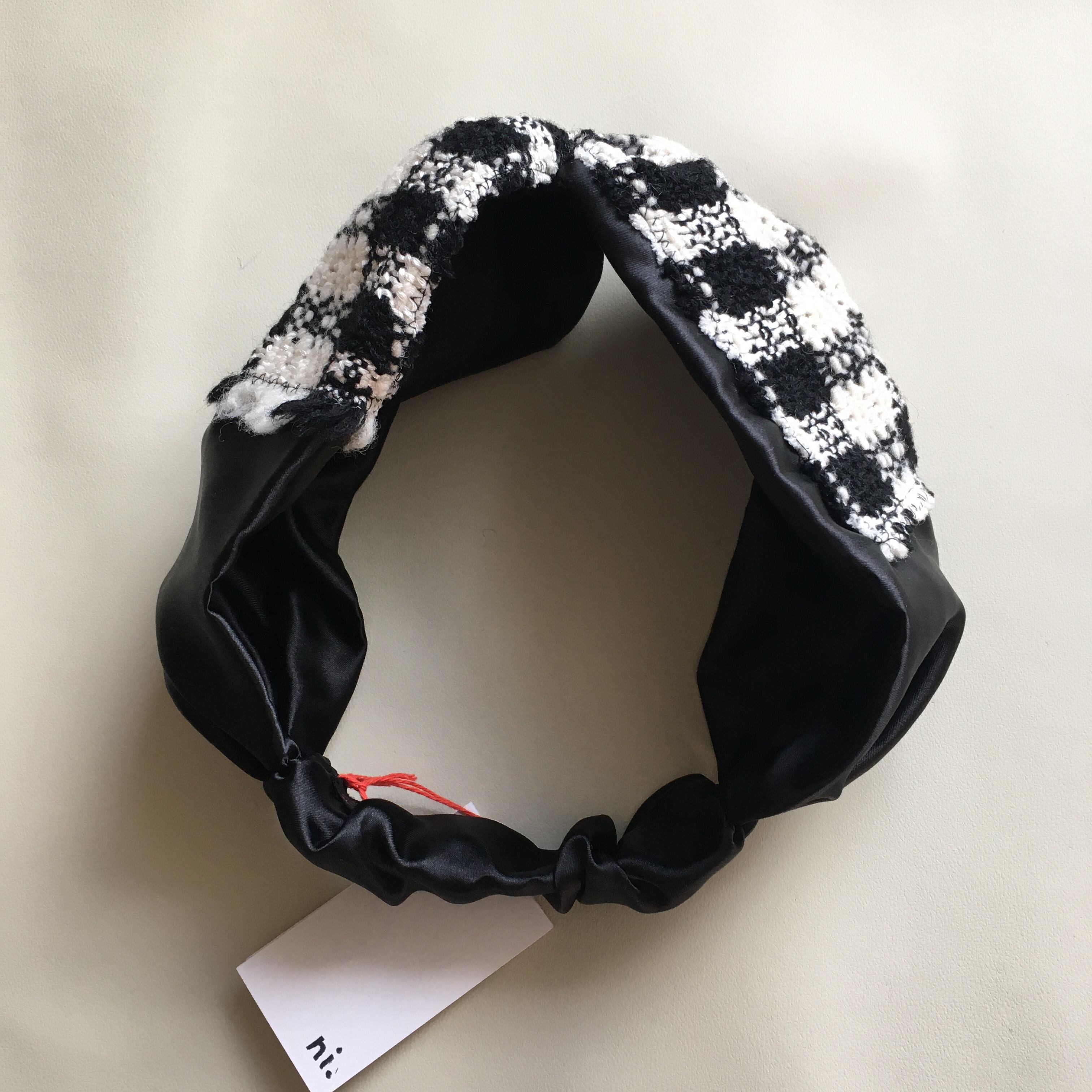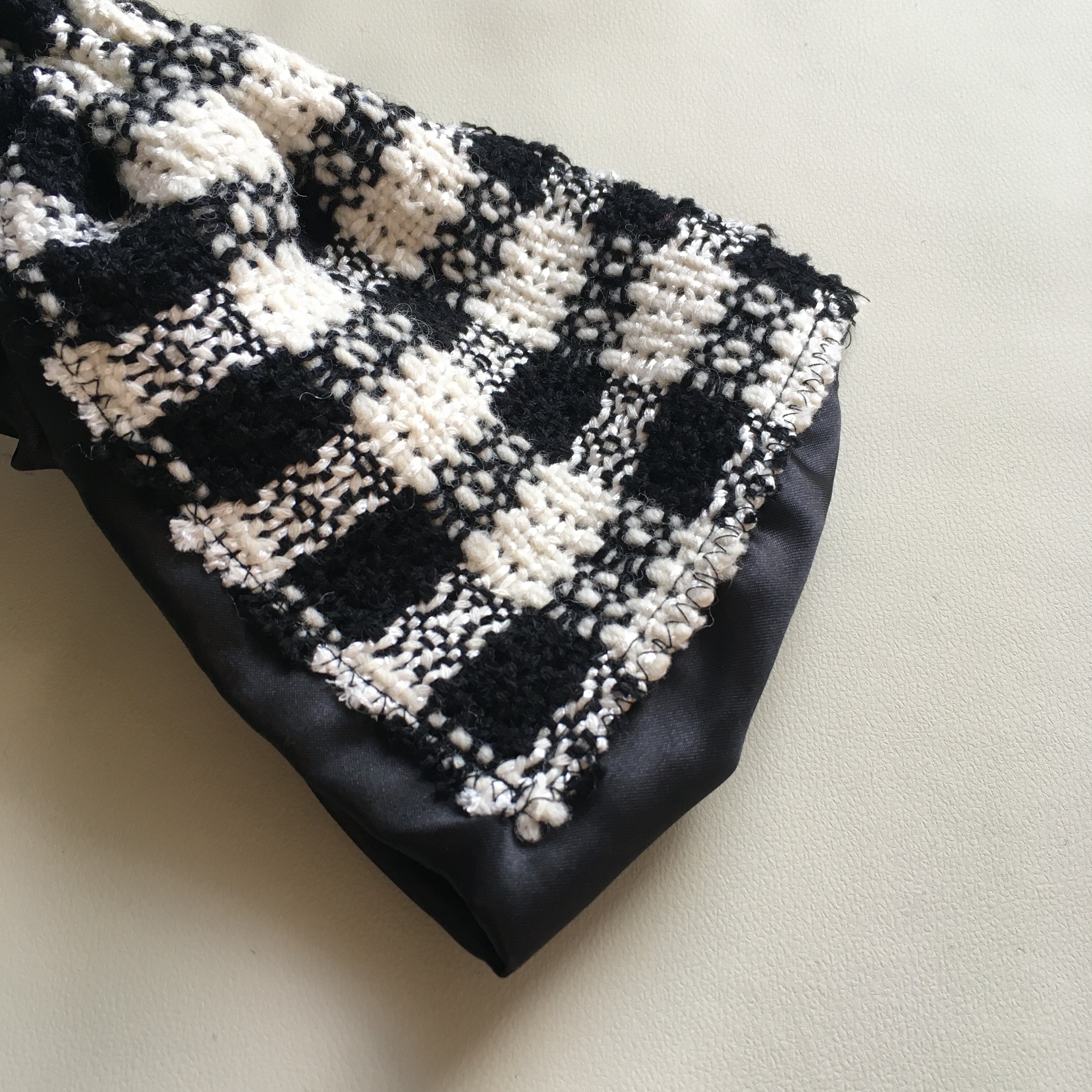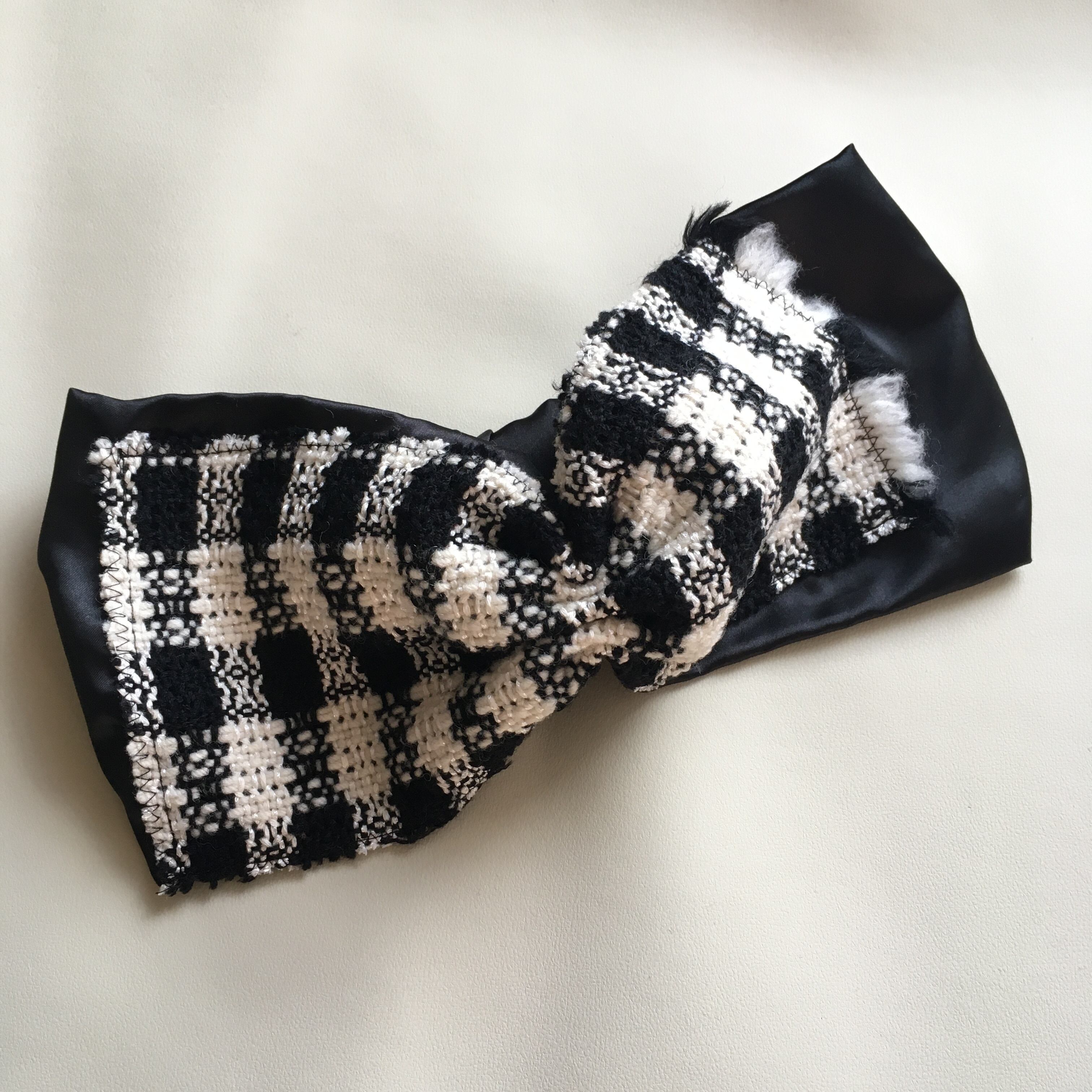 艶やかなサテンの生地をベースにリントンツイードと組み合わせて作ってあります