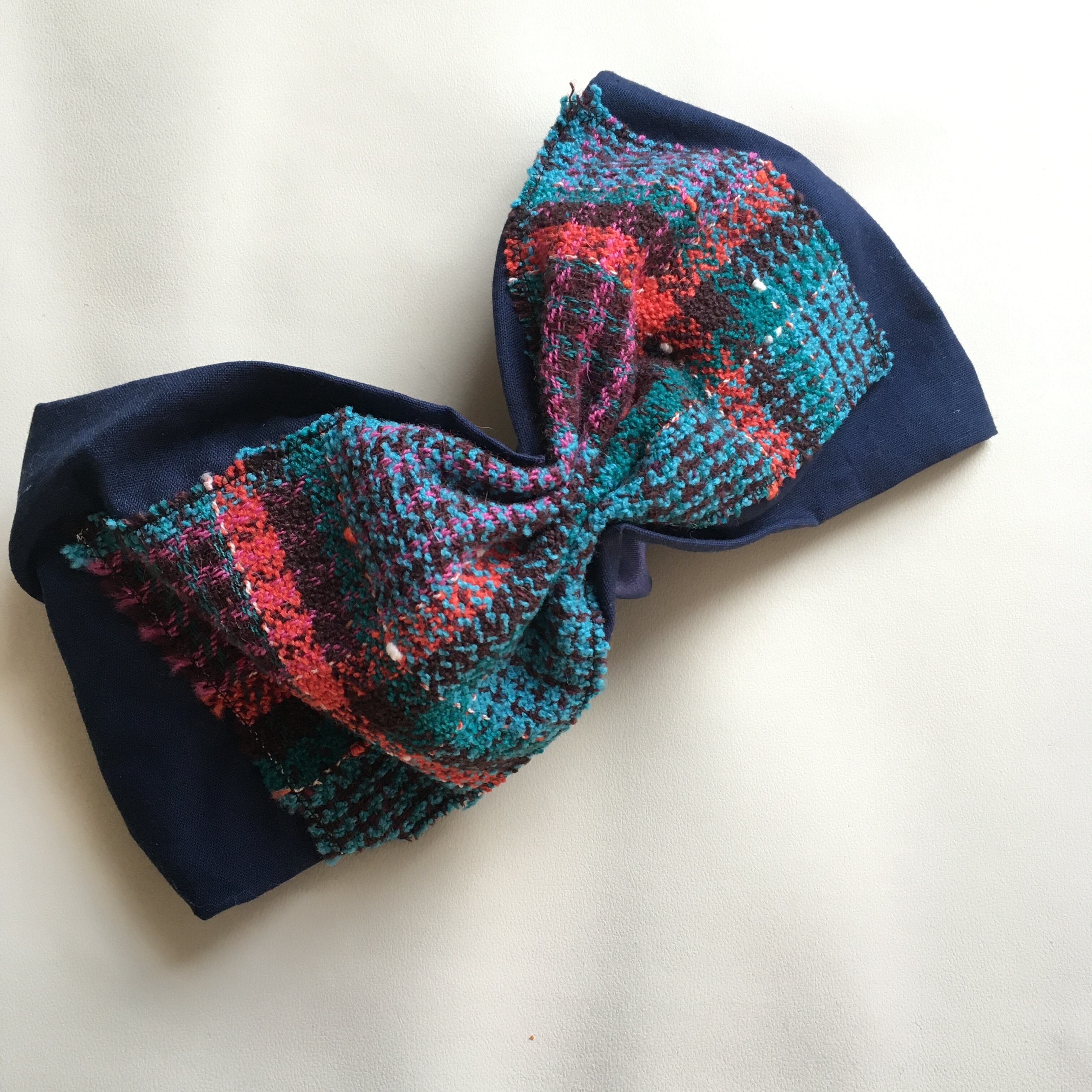 ツイードのヘアバンド(ブルーレッドチェック×ネイビー)