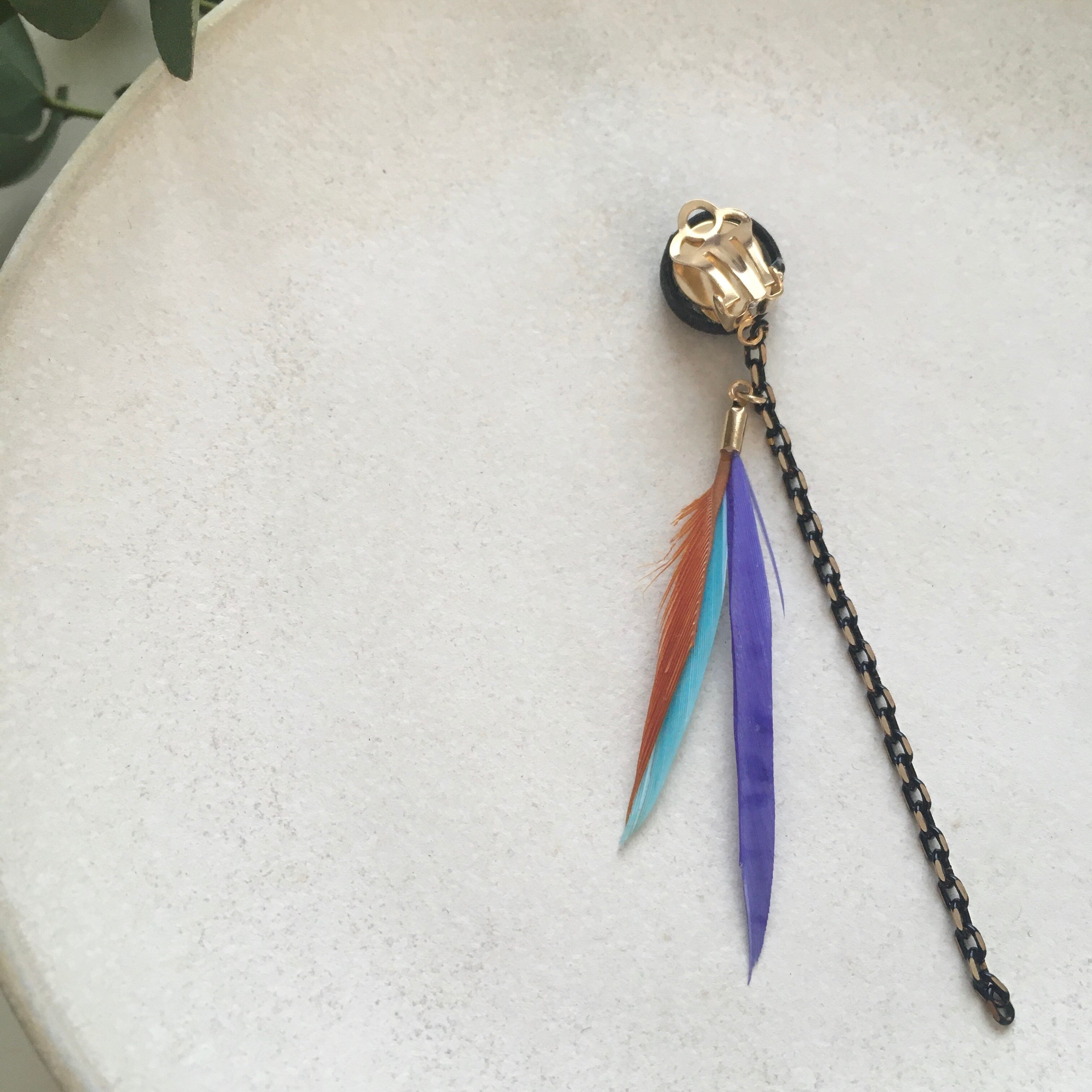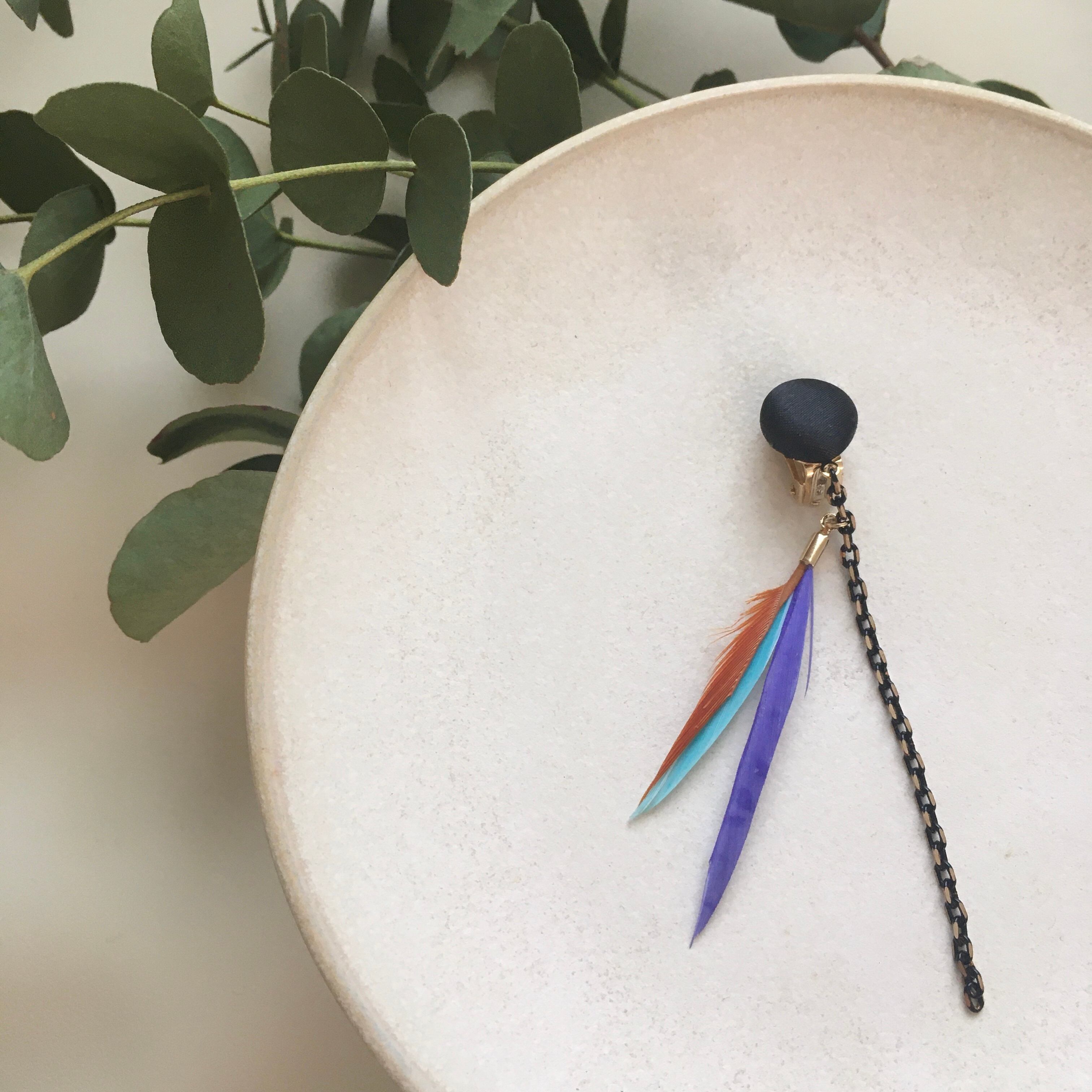 フェザーの尾羽部分をカットし、様々なカラーに合わせてチェーンを交えて新たなカタチにしました!