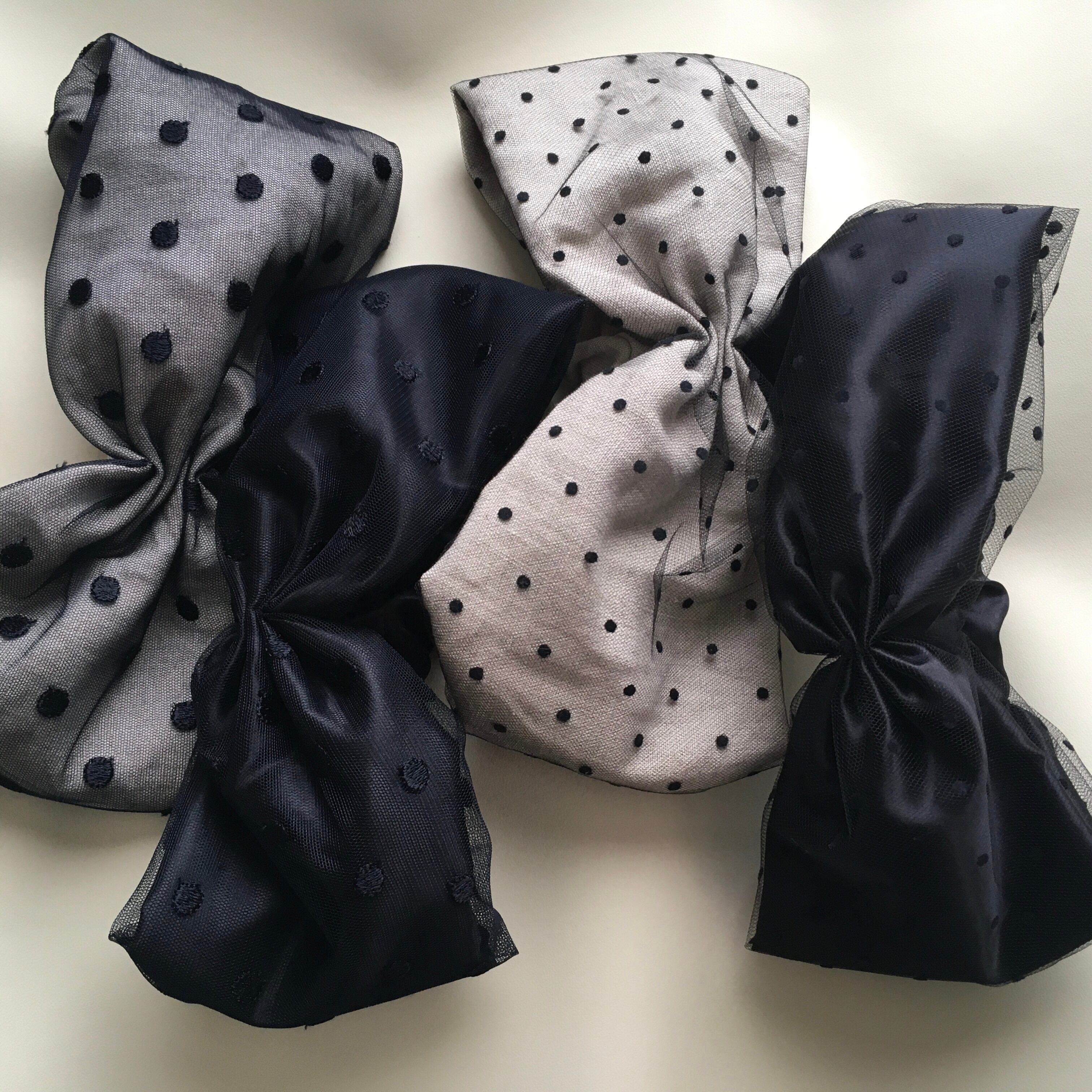 艶やかなサテンの生地とドットチュールを組み合わせて作ってあります