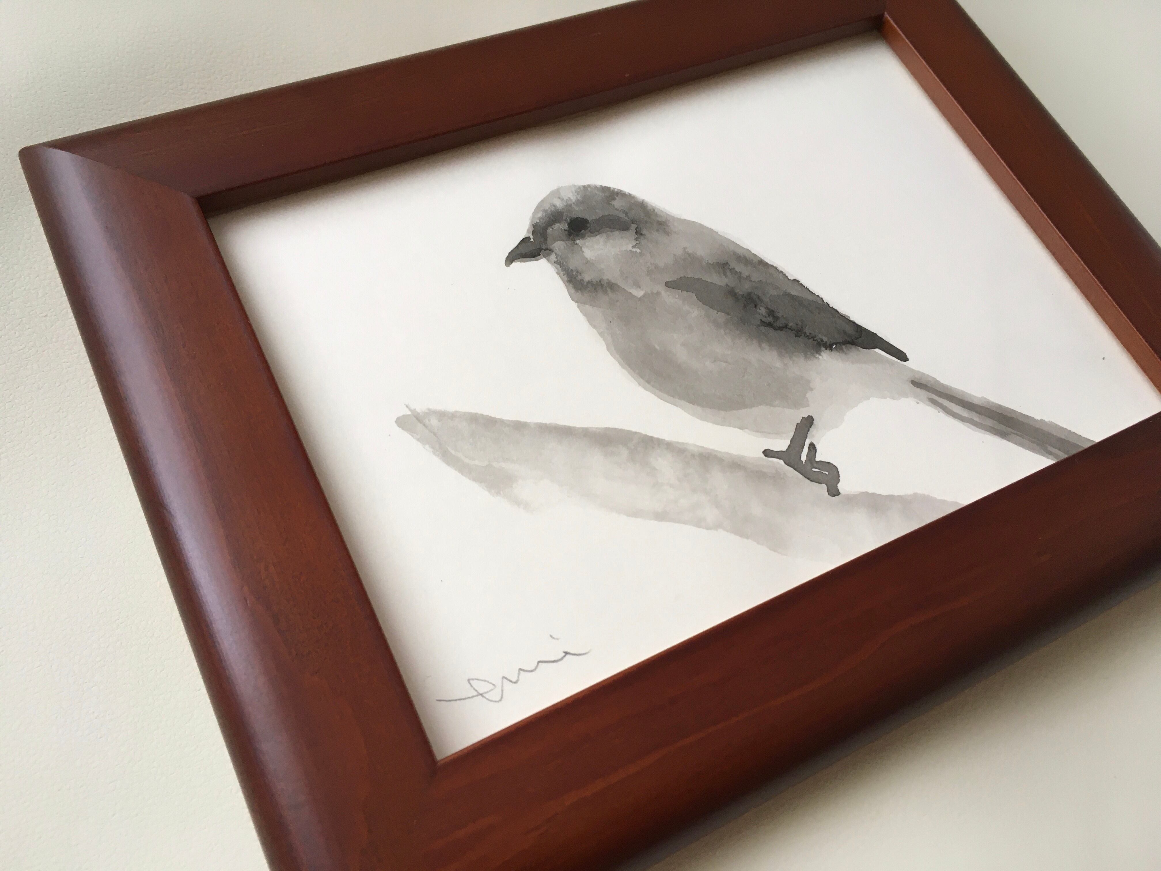 鳥の可愛さに魅了され、色を想像できる世界へと想いを込めて、あえてモノクロで描いています
